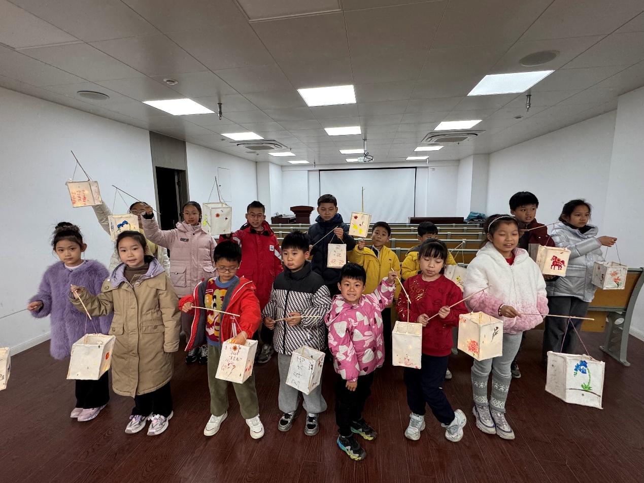 活动的另一大亮点是“花草灯笼制作”,每组家庭领取了宣纸和制作工具,老师指导大家结合兰花、小马等春节吉祥意象,自由发挥创意,装饰属于自己的花草灯笼。孩子们在父母的陪伴下,通过修剪竹木棒、搭建灯笼框架,亲手制作了独一无二的灯笼。宣纸上点缀的花草与温暖的光影交织,象征着元宵节的圆满与希望。