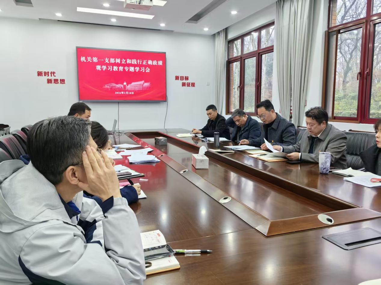 3月18日,机关第一党支部于综合楼第四会议室召开树立和践行正确政绩观学习教育专题学习会。会议由机关第一党支部书记贾春同志主持。