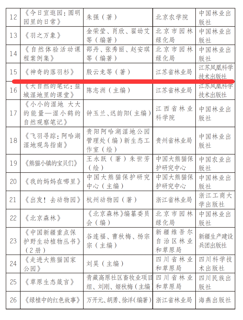 近日,国家林业和草原局公布2025年度优秀林草科普作品评选结果,我所中山杉研究团队编著的《神奇的落羽杉》成功入选。该书立足团队数十年科研积累,以严谨的知识体系、通俗的语言表达和坚实的科研支撑,系统阐释落羽杉生态特性与应用发展前景。
